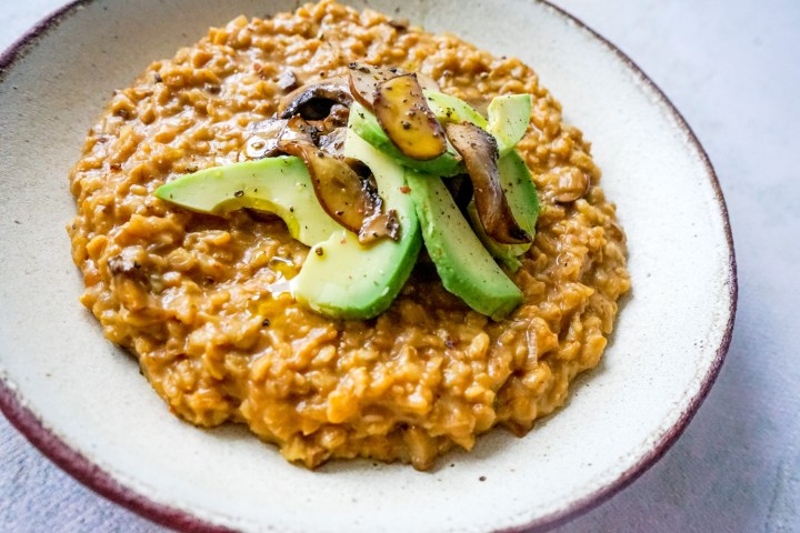 - Pune porridge-le într-un bol; deasupra pune ciupercile rămase, avocado tăiat, sare și piper.